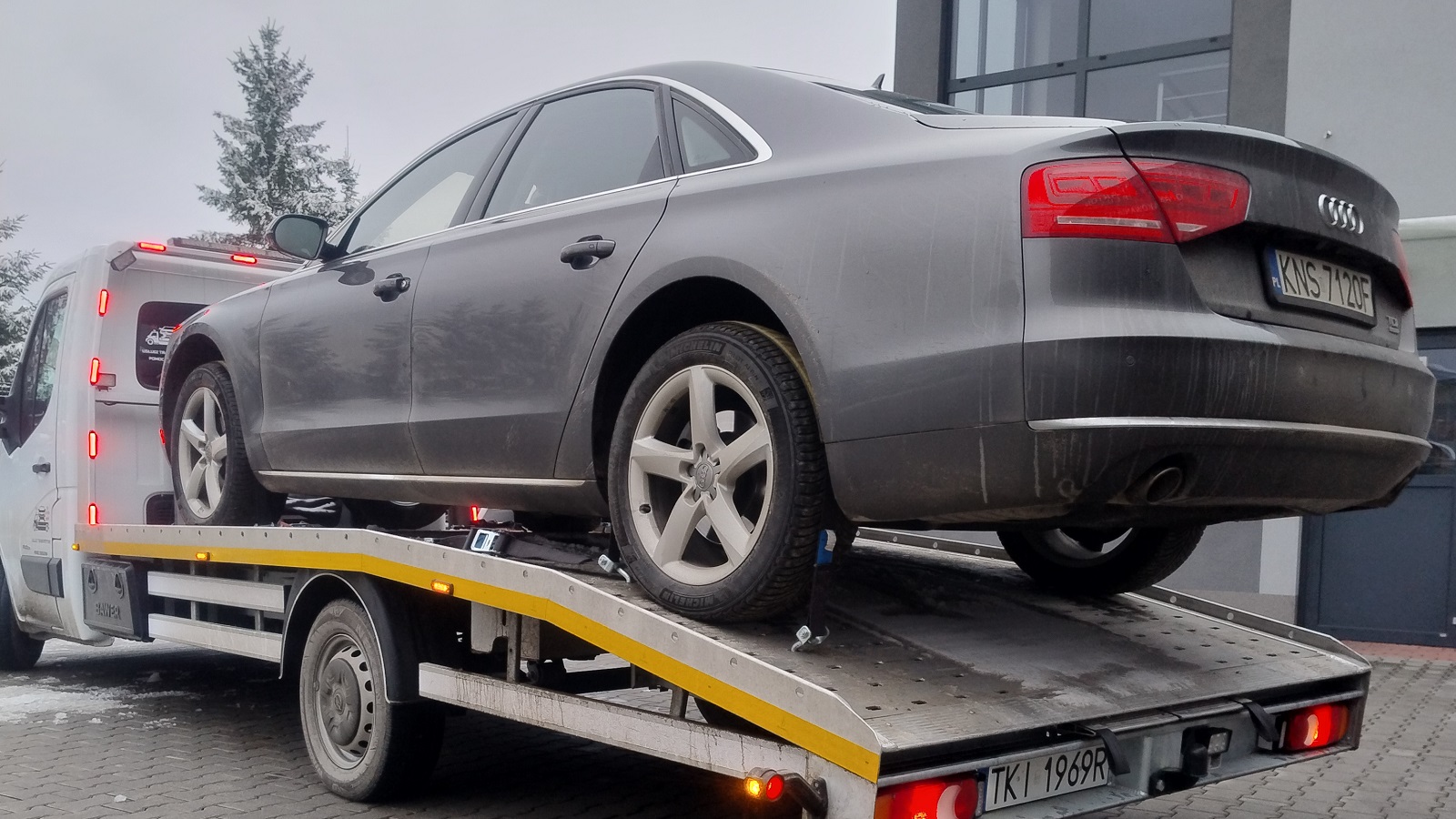 – transport autolawetą samochodów osobowych, ciągników